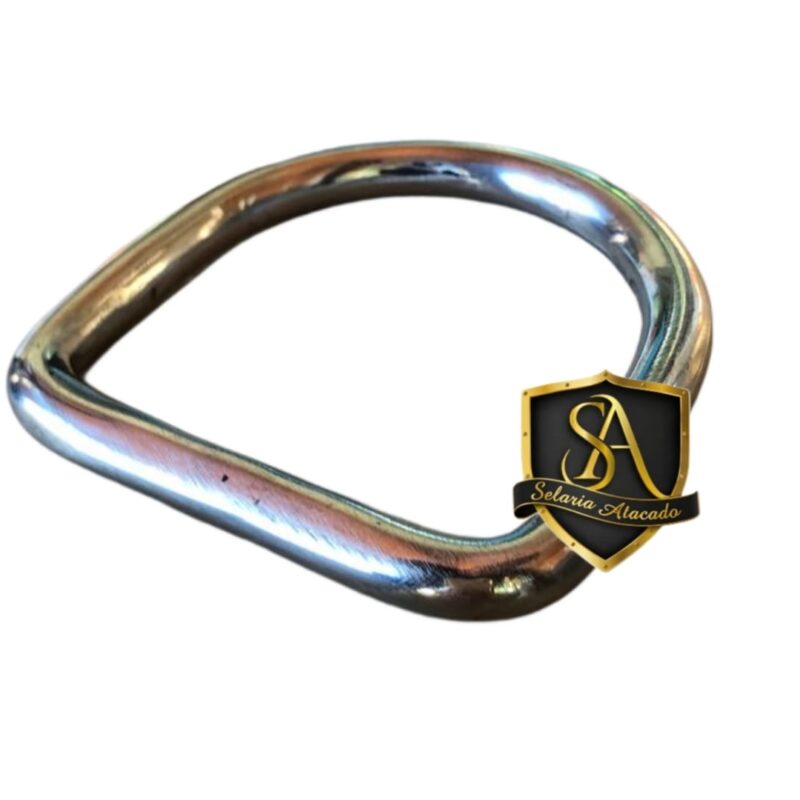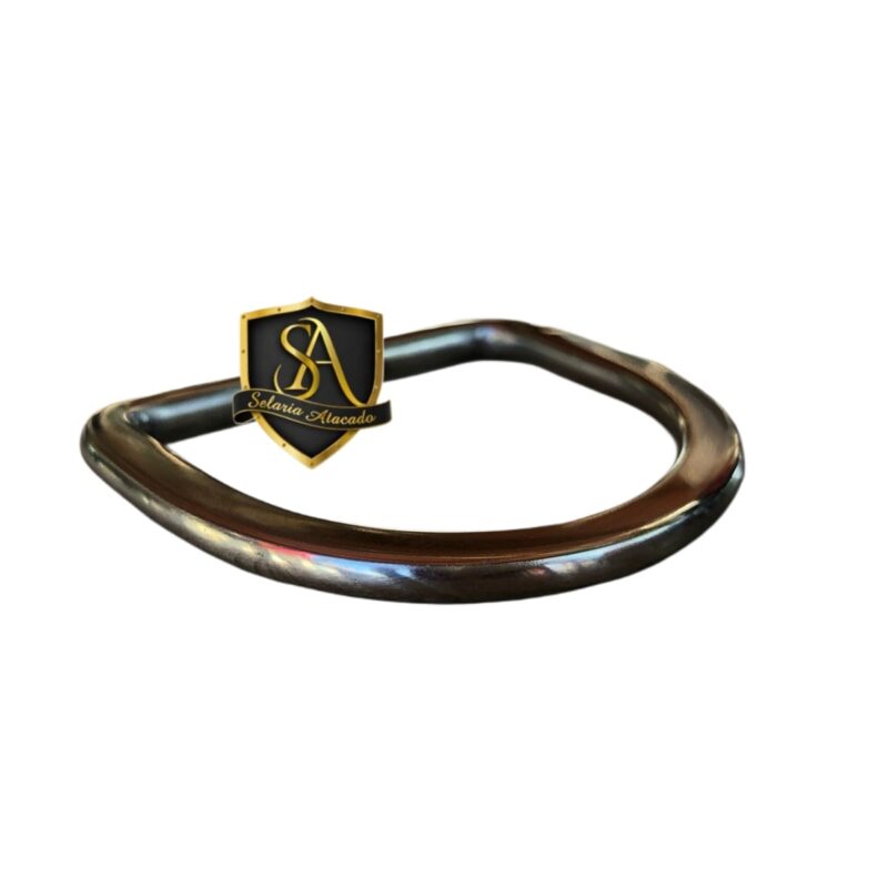 Argola formato meia lua com arame de 7mm roliço em aço inox, feito a mão com passagem de 5,5cm.