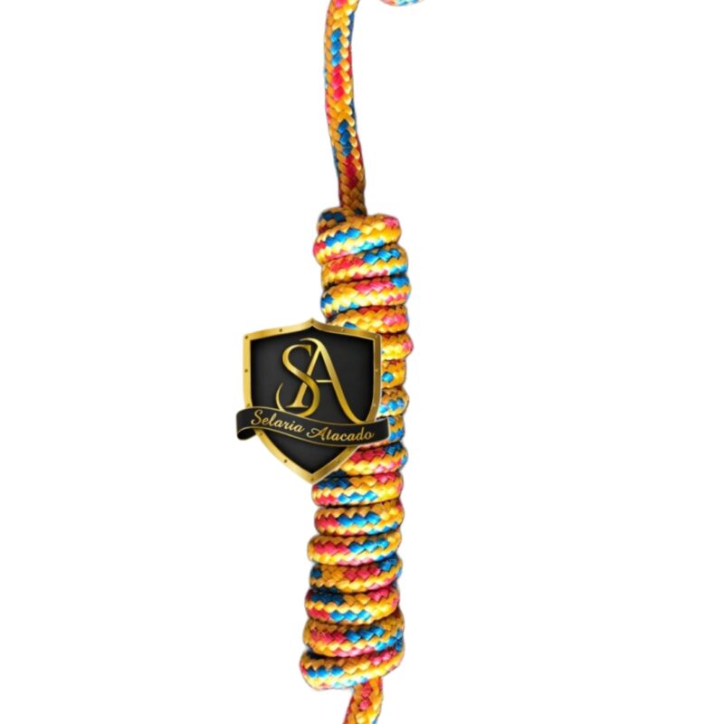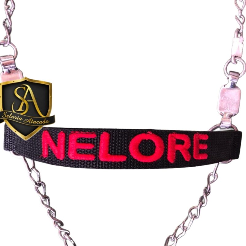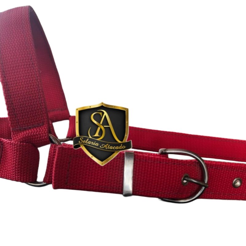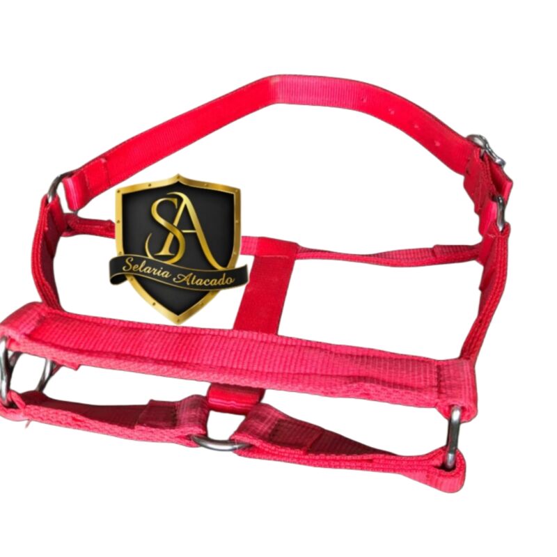 Cabresto feito com fita de seda macia, reforçado com três passagens e ferragens em inox, garantindo qualidade e conforto pro seu animal.