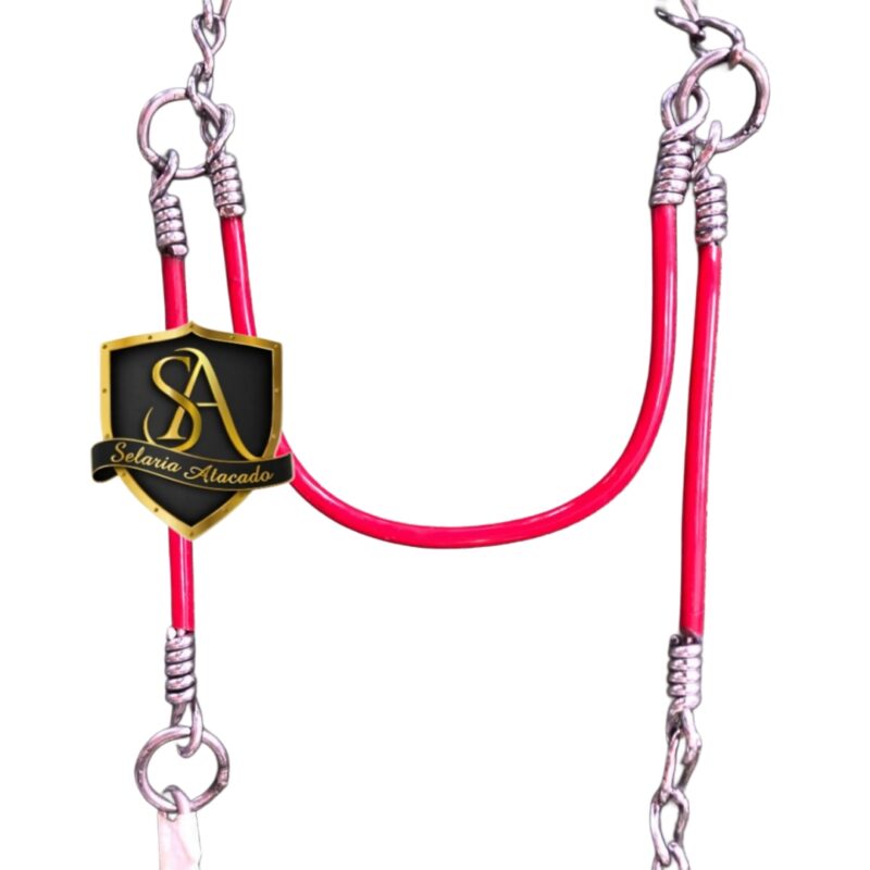 Cabresto feito em aço em cabo de aço é corrente garantindo alta durabilidade e resistência ao ferrugem .