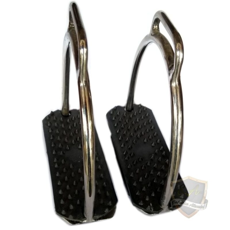 Estribo Zabele Fino feito em aço Inox no arrame de 8mm, com sapata em inox é borracha antiderapante.