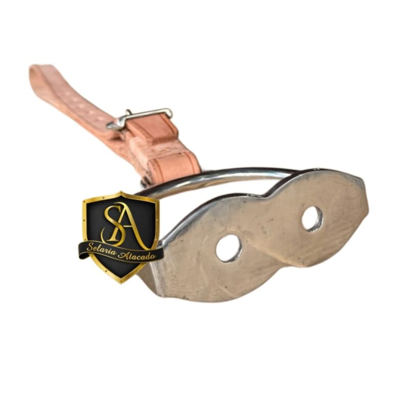 O preço original era: R$60,00.R$44,99O preço atual é: R$44,99.Estribo em aço inox feito a mão modelo sapata giratória