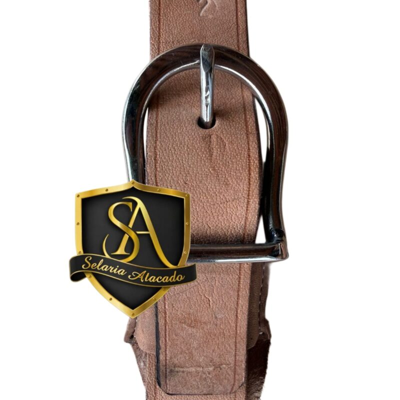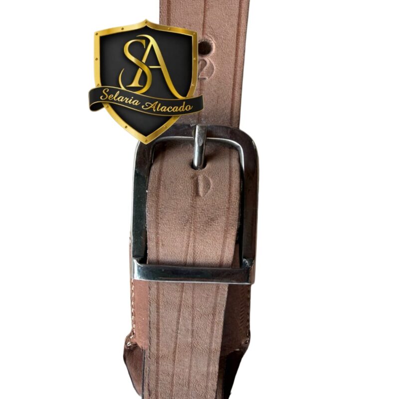 loro feito em sola laminada com fivela em aço inox quadrada roliça.