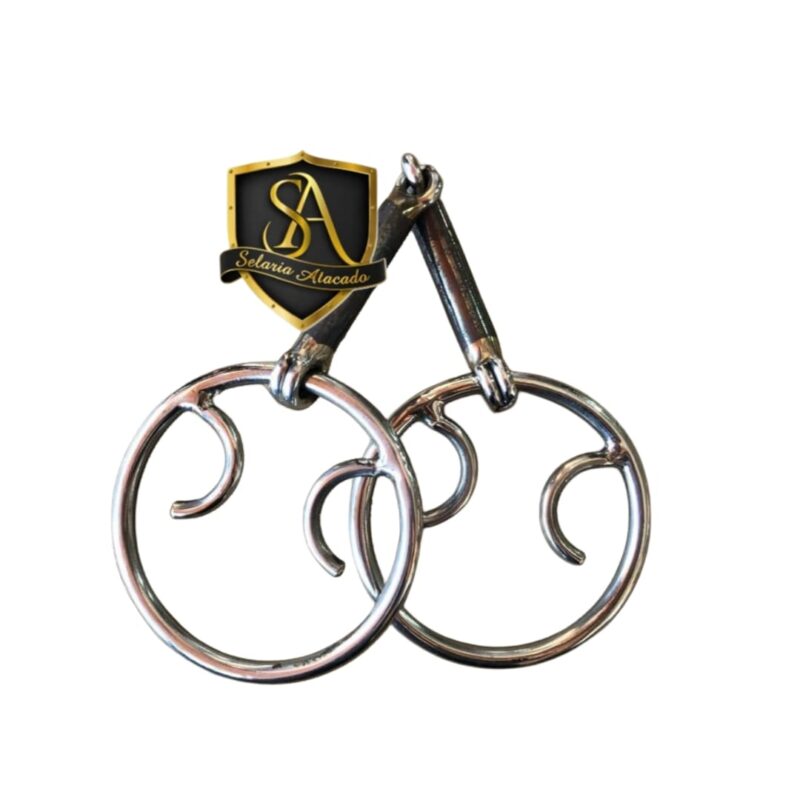 Bridão modelo D em aço inox feito à mão, com bocal torcido e protetores de borracha.