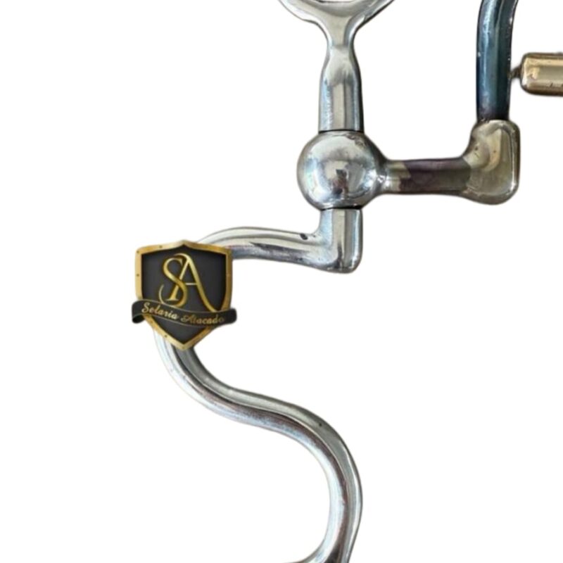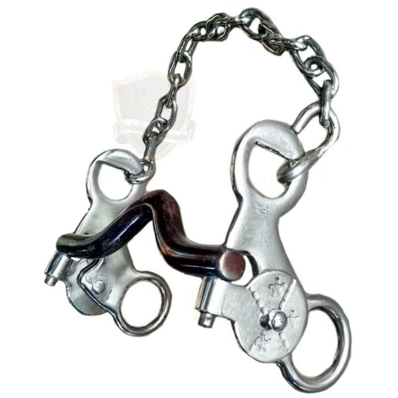Freio modelo machadinho em aço inox feito à mão, com bocal bridão em ferro.